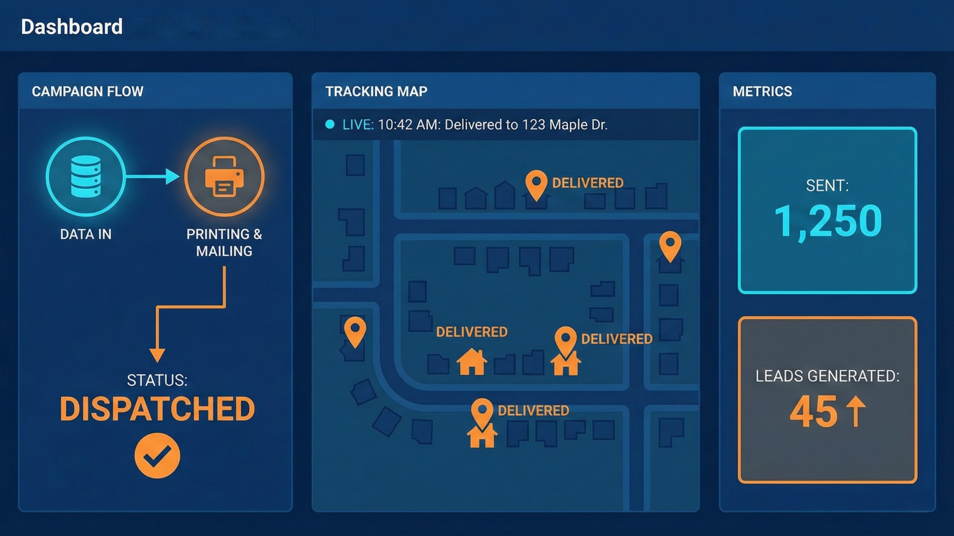 You approve the zone. We handle print, postage, and tracking. You get the calls.
